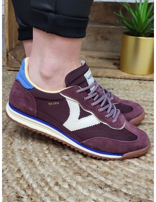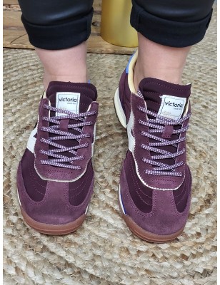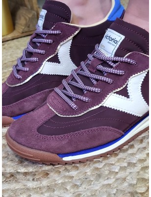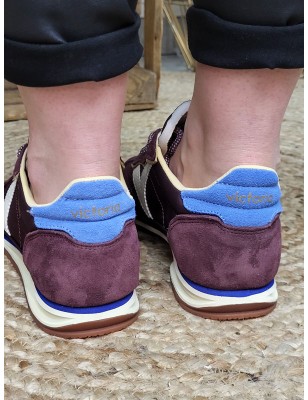 Empiècement bleu en suédine avec inscription Victoria sur le contrefort