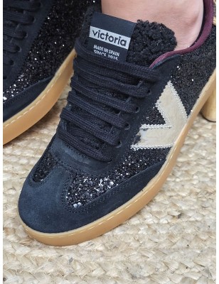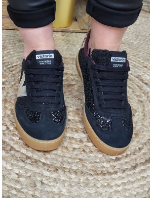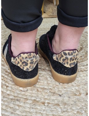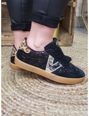 Baskets basses pailletées avec empiècements en suédine noire