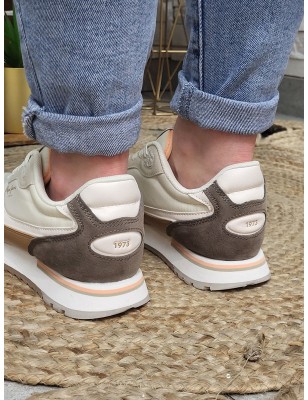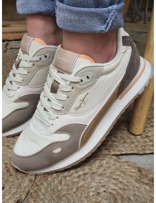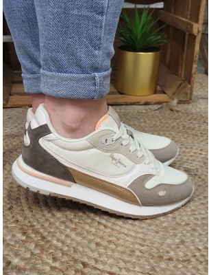 Baskets sneakers femme Pepe Jeans Bexley city bi-matière blanches