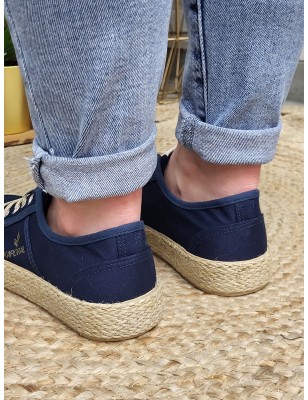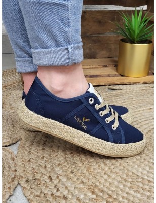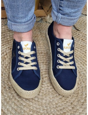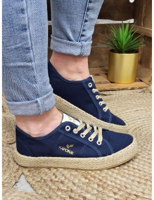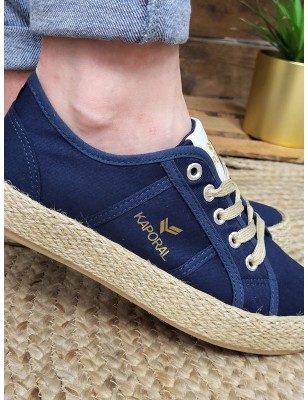 Baskets en tissu Kaporal Biorgaty marine avec semelle effet corde et lacet doré