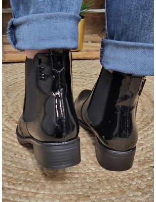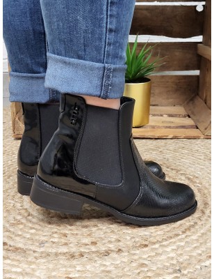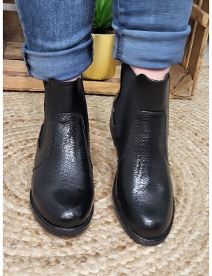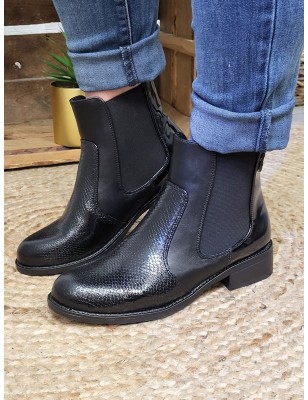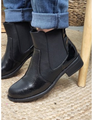 Bottines femme LPB Gamra noires multi matières avec effet serpent