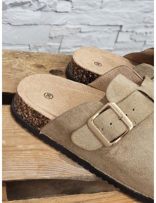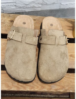 Sabots femme Morella taupe effet suédine avec lanière et boucle