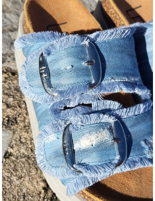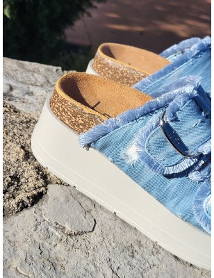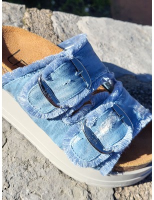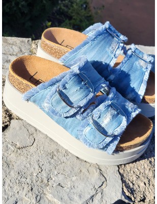 Claquettes à plateforme avec 2 brides réglables effet jean