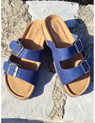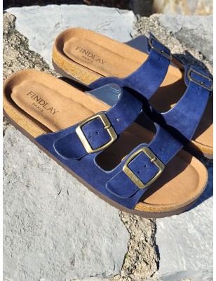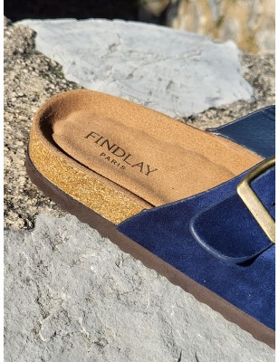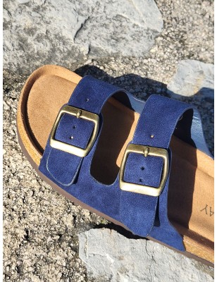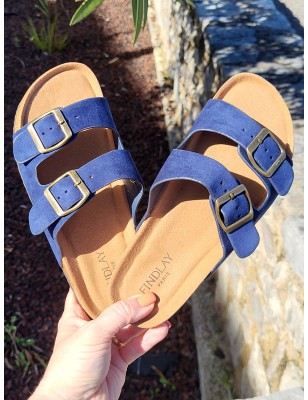 Mules femme Celesta marine avec grosses brides effet daim