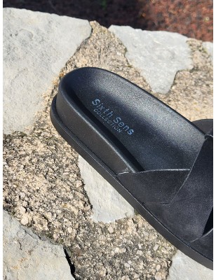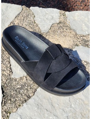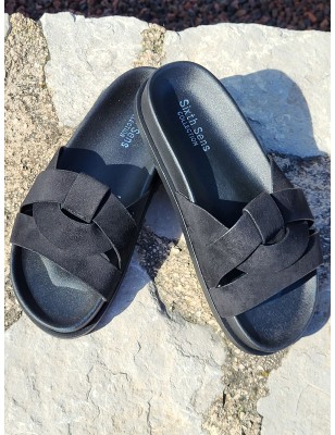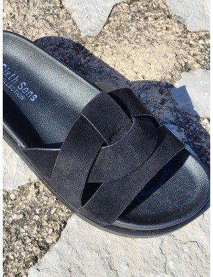 Mules femme daim isadora noires avec grosses brides entrelacées