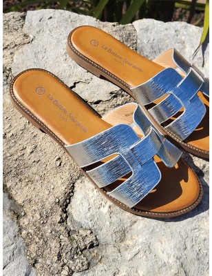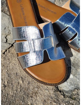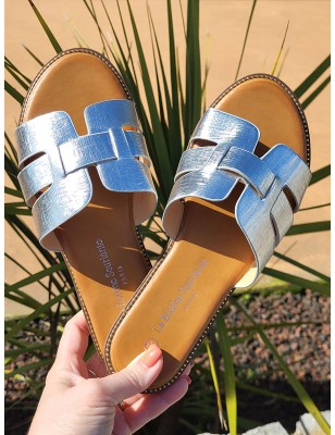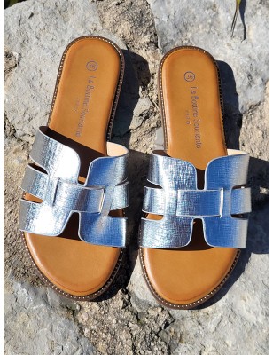Mules femme Mélodie argent avec brides ajourées