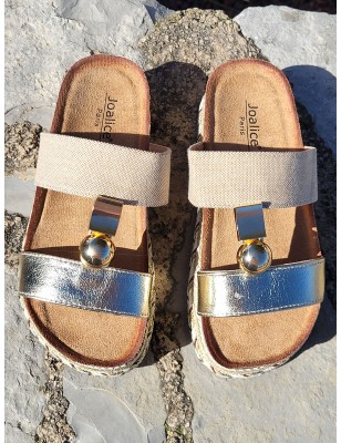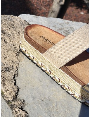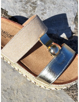 Mules femme Cathy dorées avec plateforme style ethnique