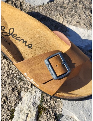 Claquettes avec inscription Pepe Jeans sur le côté de la bride et sur la boucle