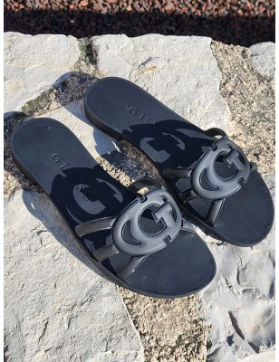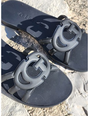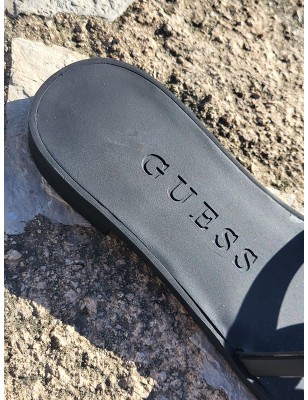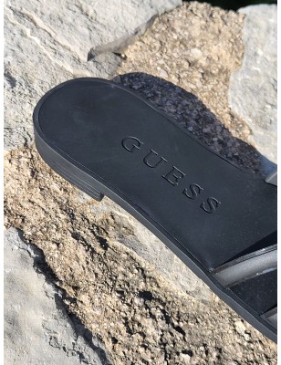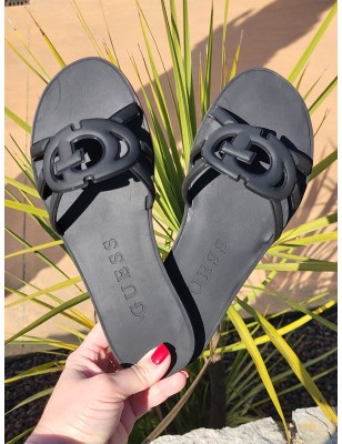 Mules femme Guess Rosgo noires effet mat avec gros logo Guess