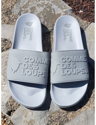 Claquettes homme Comme Des Loups Cla-1 grises avec grosse bride et inscription CDL