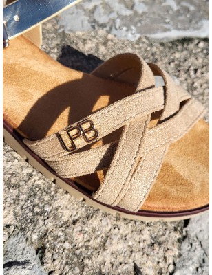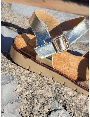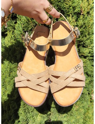 Sandales femme LPB Nelli dorées avec brides entrelacées effet pailleté