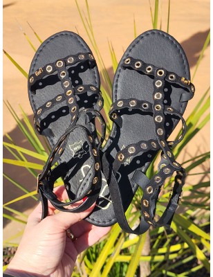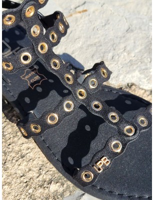 Sandales femme LPB Nouria noires effet suédine avec brides et œillets dorés