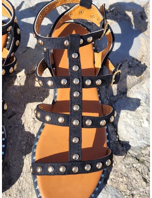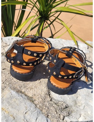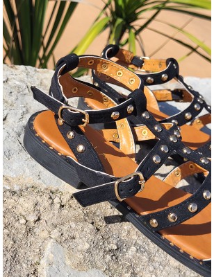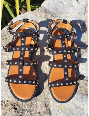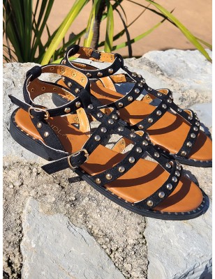Brides au niveau de la cheville avec boucle métallique dorée réglable