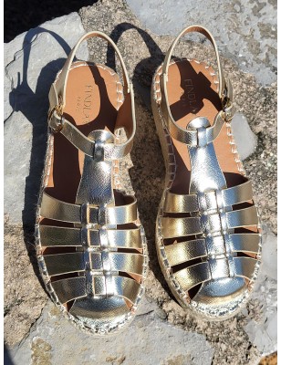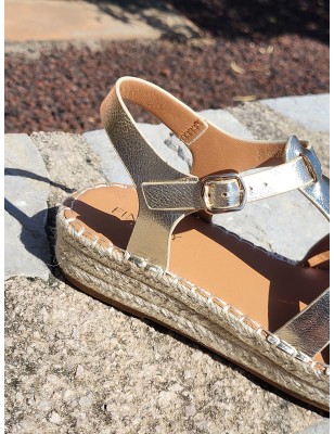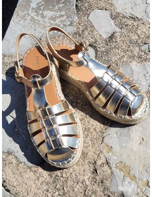 Sandales femme Anita dorées effet métallisé avec semelle effet paille