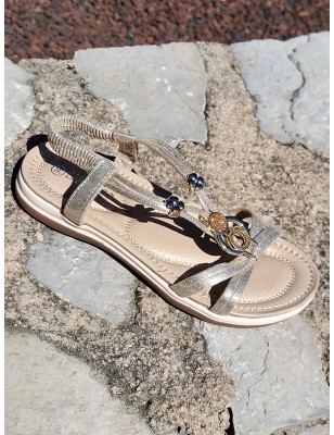 Sandales femme Elaura dorées avec brides effet brillant et ornements dorés