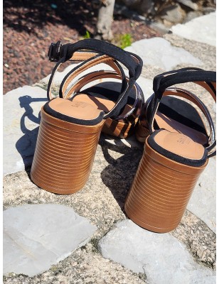 Sandales à talon bi-matières